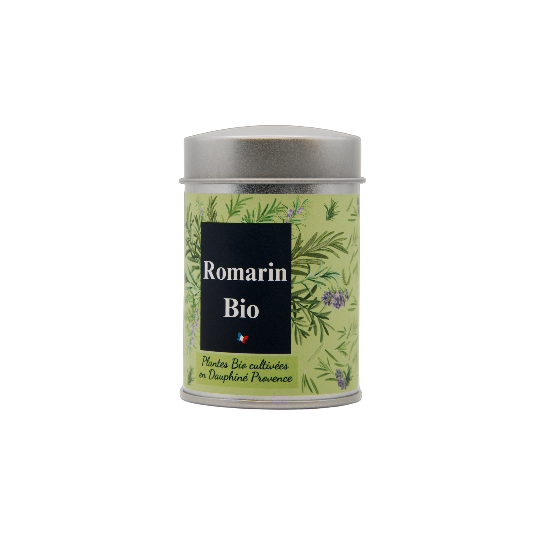 La boite métalique contenant 30g net de romarin est munie d'un saupoudreuse afin d'en faciliter son utilisation.